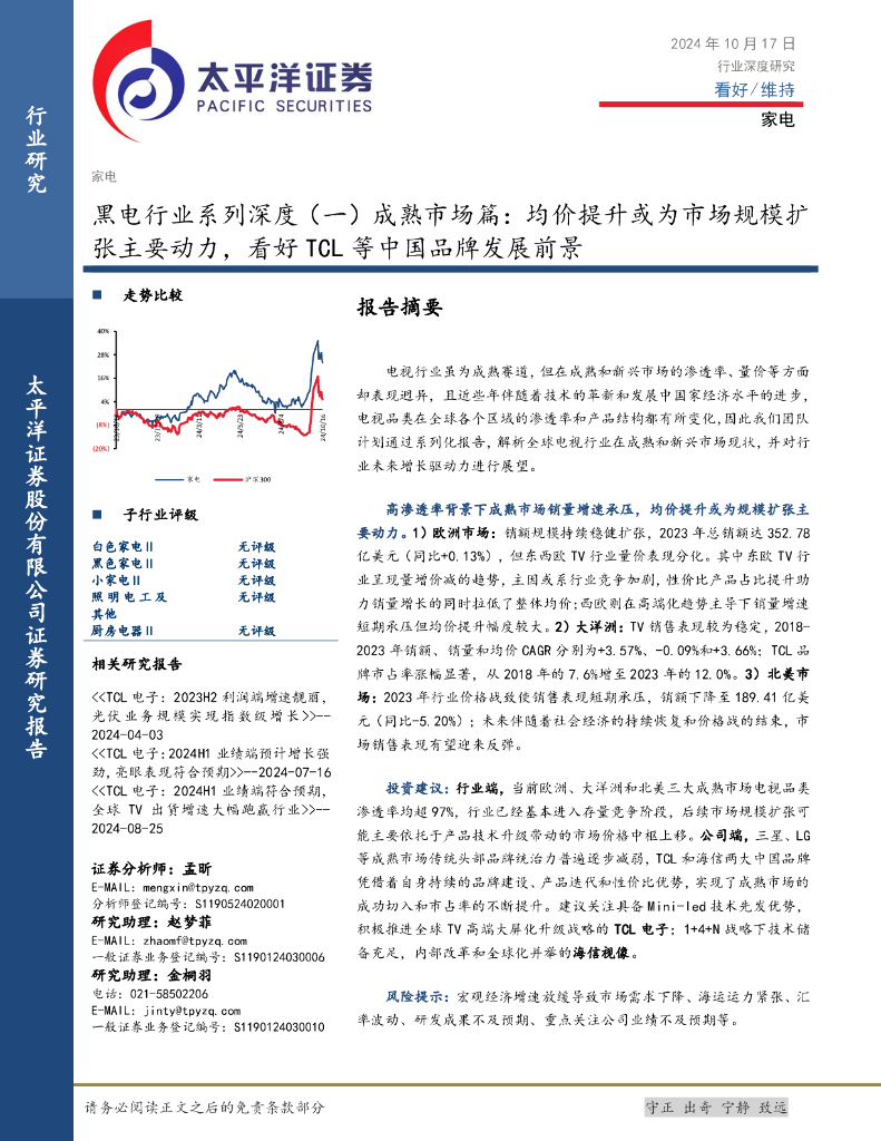 太平洋证券:黑电行业系列深度(一)成熟市场篇:均价提升或为市场规模扩张主要动力,看好TCL等中国品牌发展前景.pdf