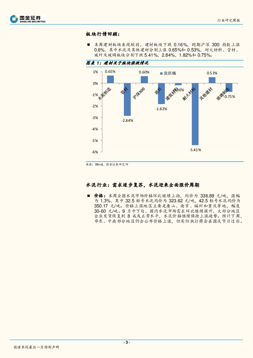 国金证券:非金属类建材研究周报:水泥玻璃全年价格高点将在四季度,环保限产带来价格超预期上涨.pdf