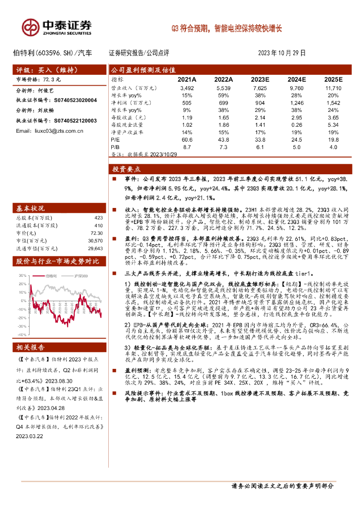 中泰证券:伯特利(603596)-Q3符合预期,智能电控保持较快增长.pdf