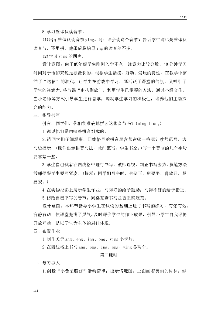 一年级语文(教案2)13 ang eng ing ong教学设计.doc