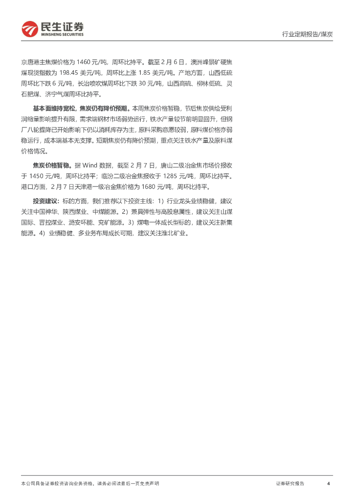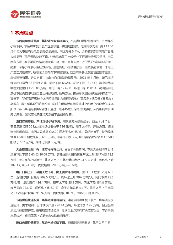 民生证券:煤炭周报:节后调整尚未结束,煤价或窄幅波动运行.pdf