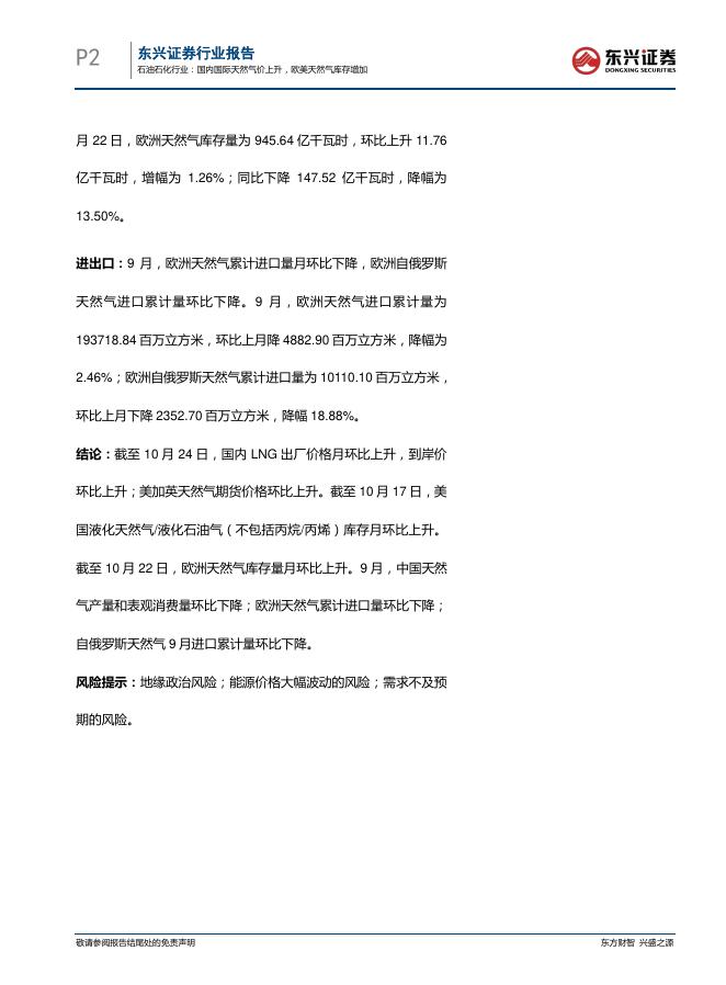 东兴证券:石油石化行业:国内国际天然气价上升,欧美天然气库存增加.pdf