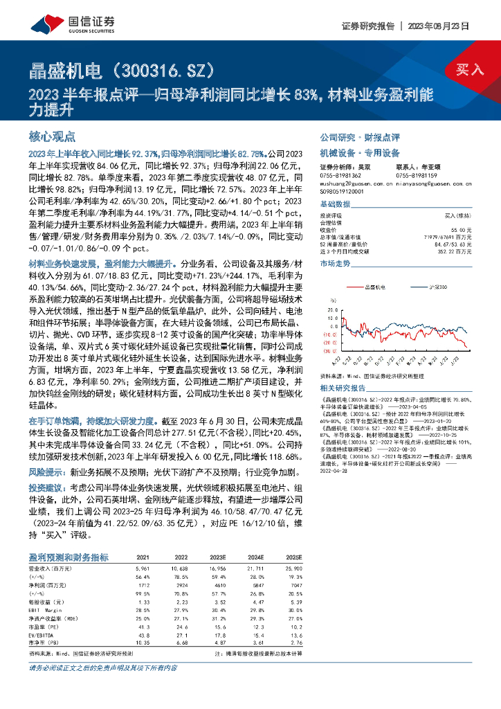 国信证券:晶盛机电(300316)-2023半年报点评:归母净利润同比增长83%,材料业务盈利能力提升.pdf