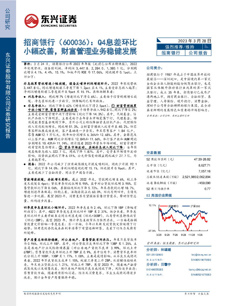 东兴证券:招商银行(600036)-Q4息差环比小幅改善,财富管理业务稳健发展.pdf