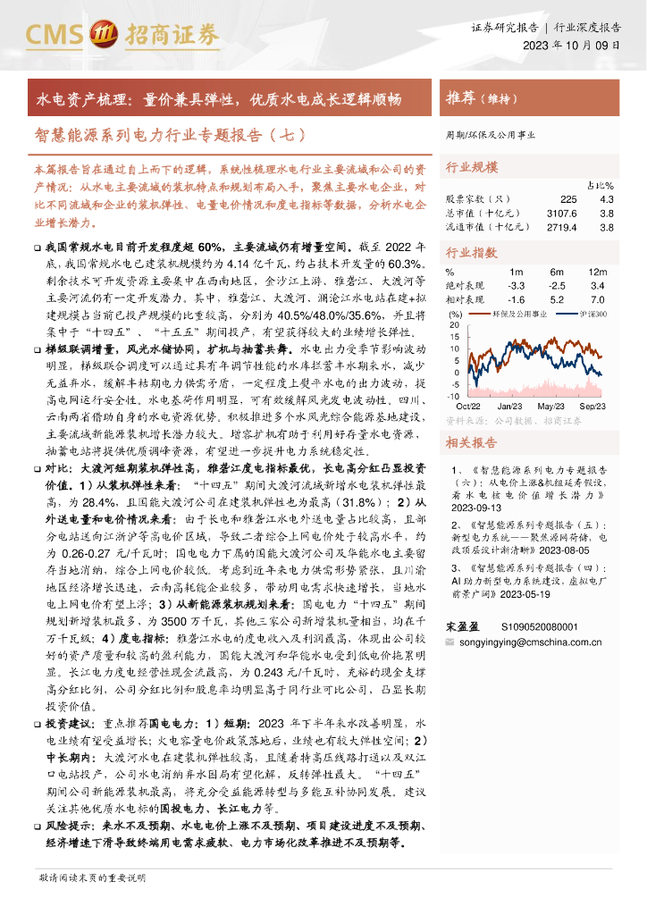 招商证券:智慧能源系列电力行业专题报告:水电资产梳理,量价兼具弹性,优质水电成长逻辑顺畅.pdf