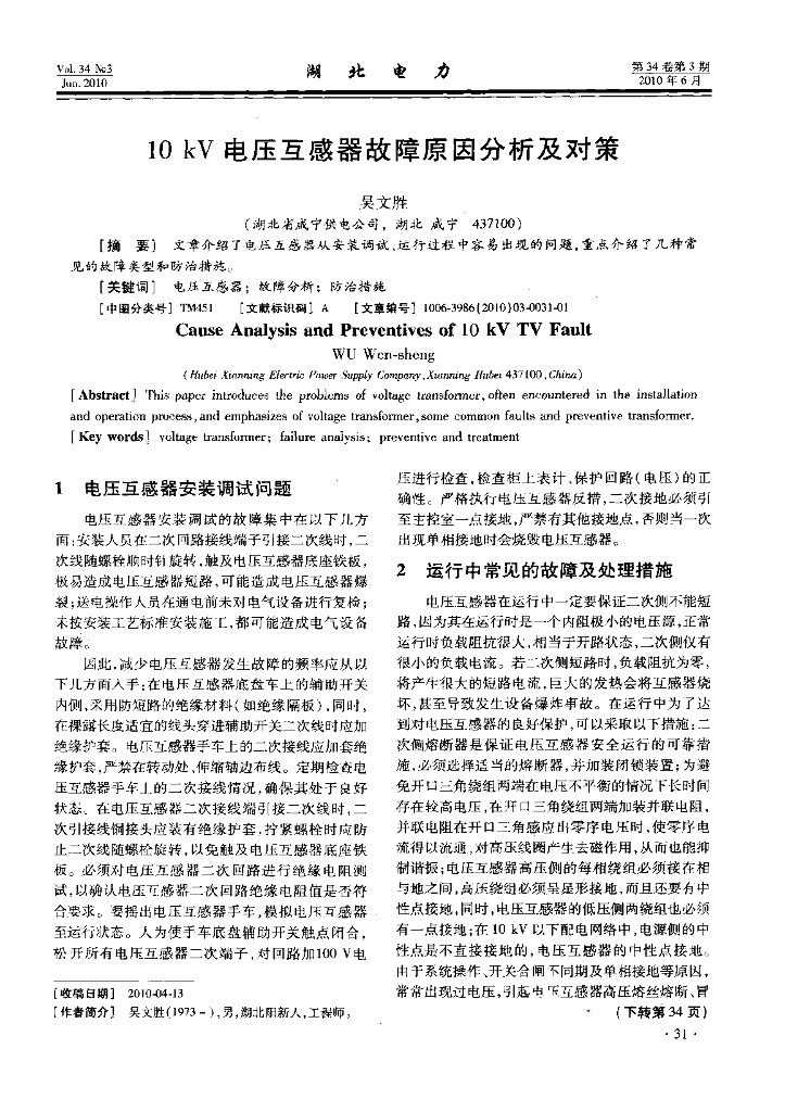 10KV电压互感器故障原因分析及对策.pdf