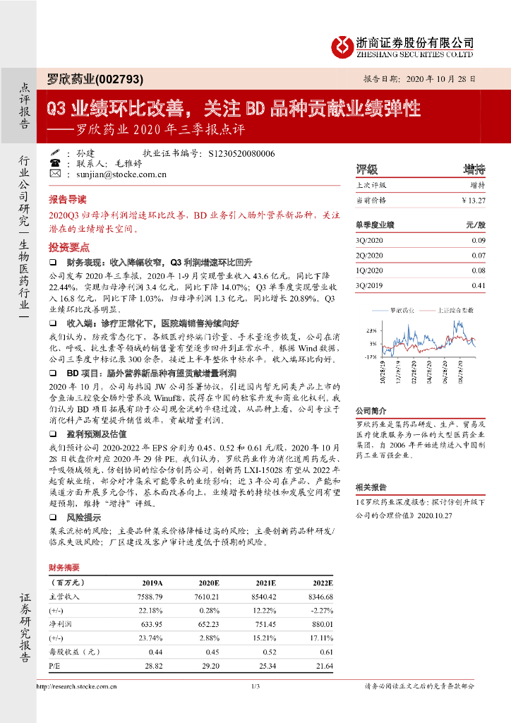 浙商证券:罗欣药业2020年三季报点评:Q3业绩环比改善,关注BD品种贡献业绩弹性.pdf