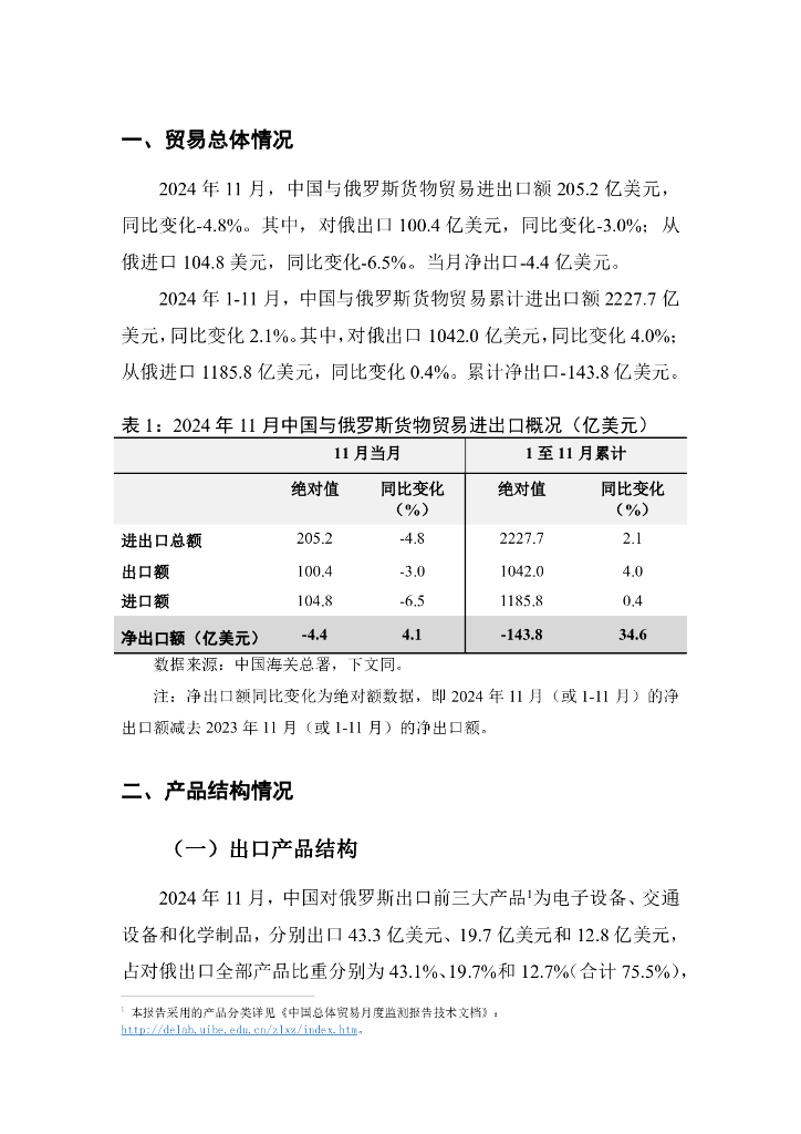 对外经济贸易大学:中俄总体贸易月度监测报告(2024年1-11月).pdf