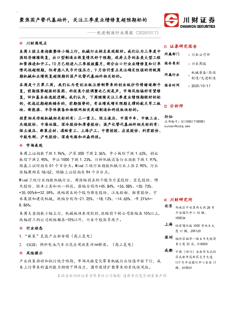 川财证券:先进制造行业周报:聚焦国产替代基础件,关注三季度业绩修复超预期标的.pdf