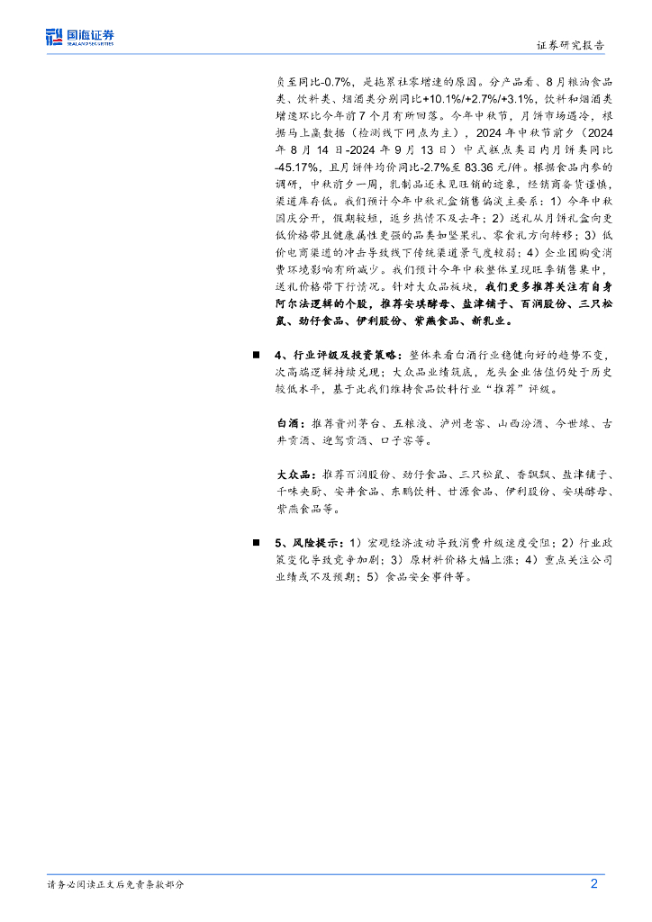 国海证券:食品饮料行业周报:中秋反馈平淡,静待需求复苏.pdf