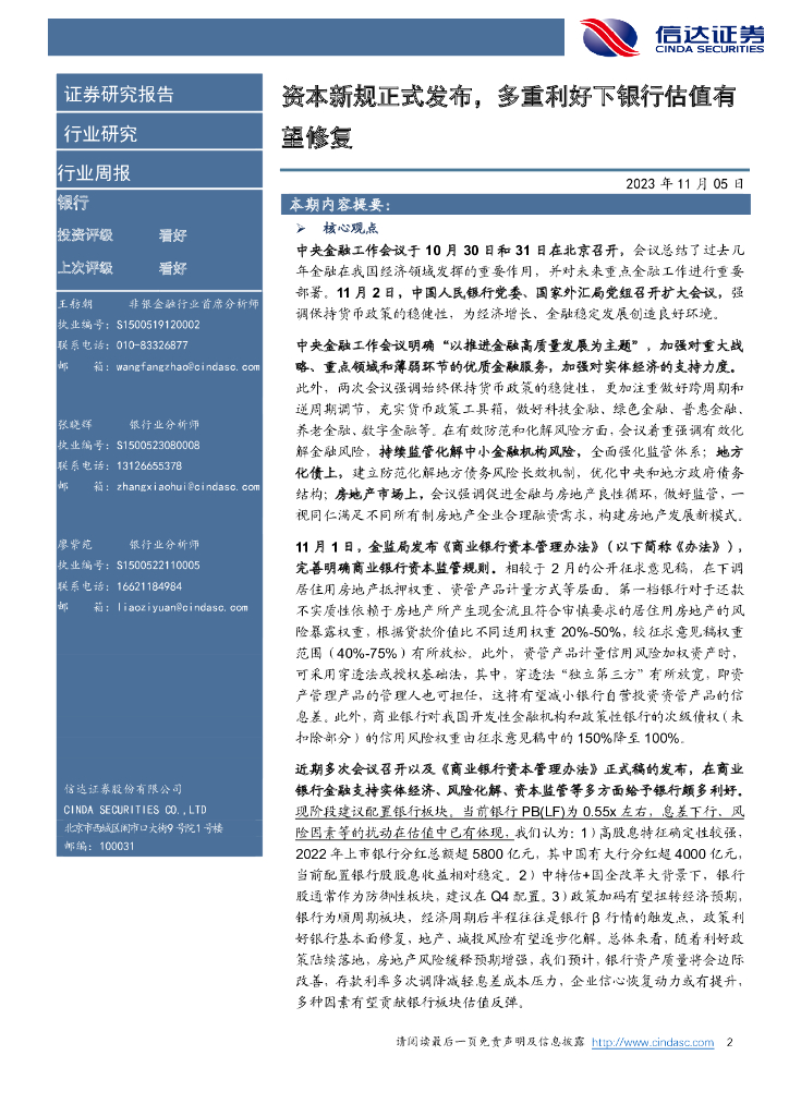 信达证券:银行行业周报:资本新规正式发布,多重利好下银行估值有望修复.pdf