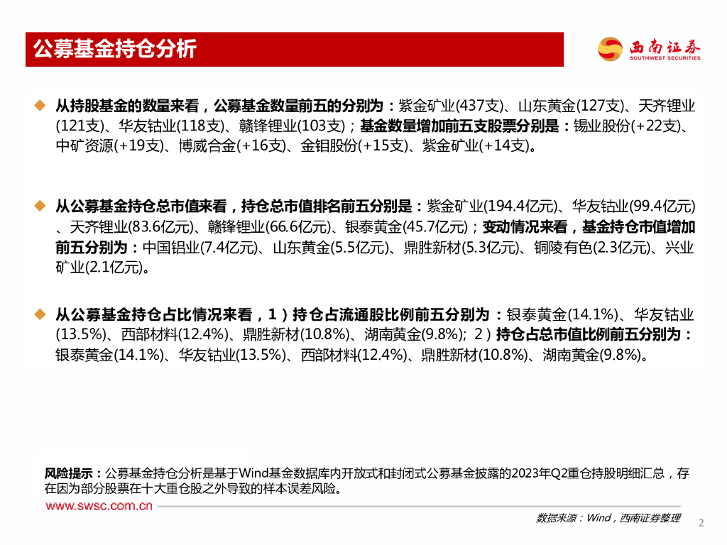 西南证券:有色金属行业2023Q2基金持仓分析:行业配置环比下滑,增持贵金属板块.pdf