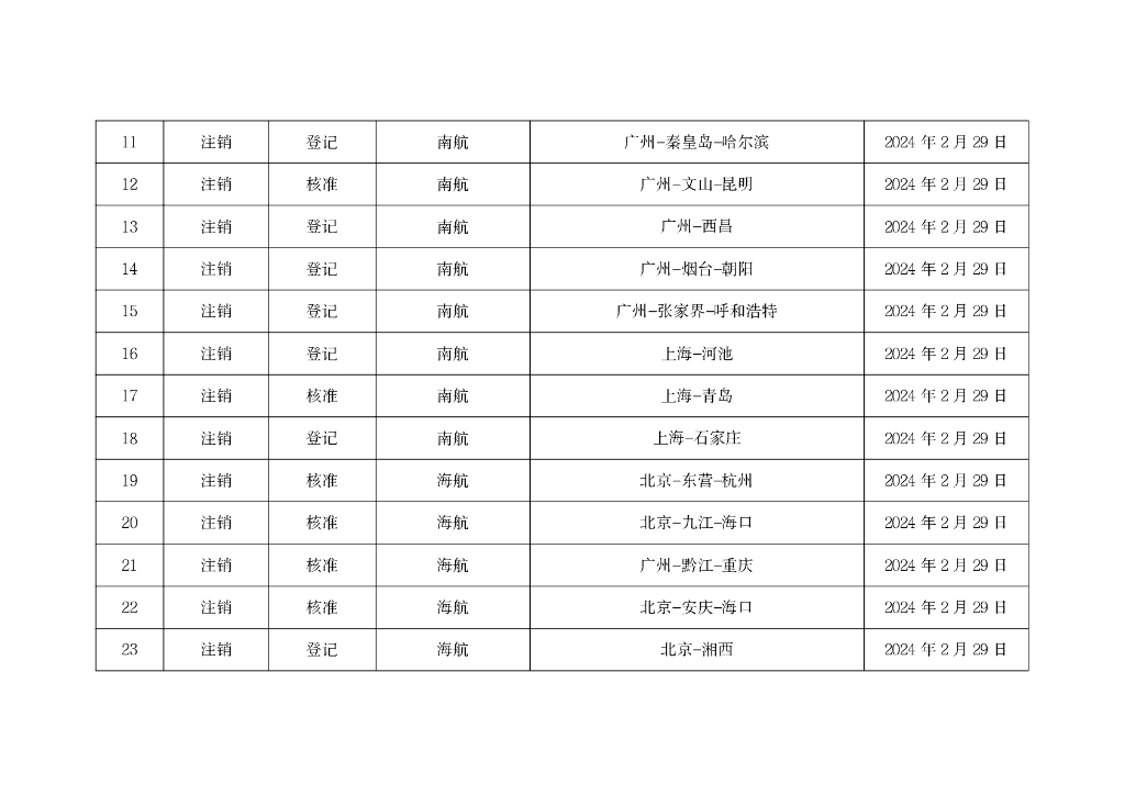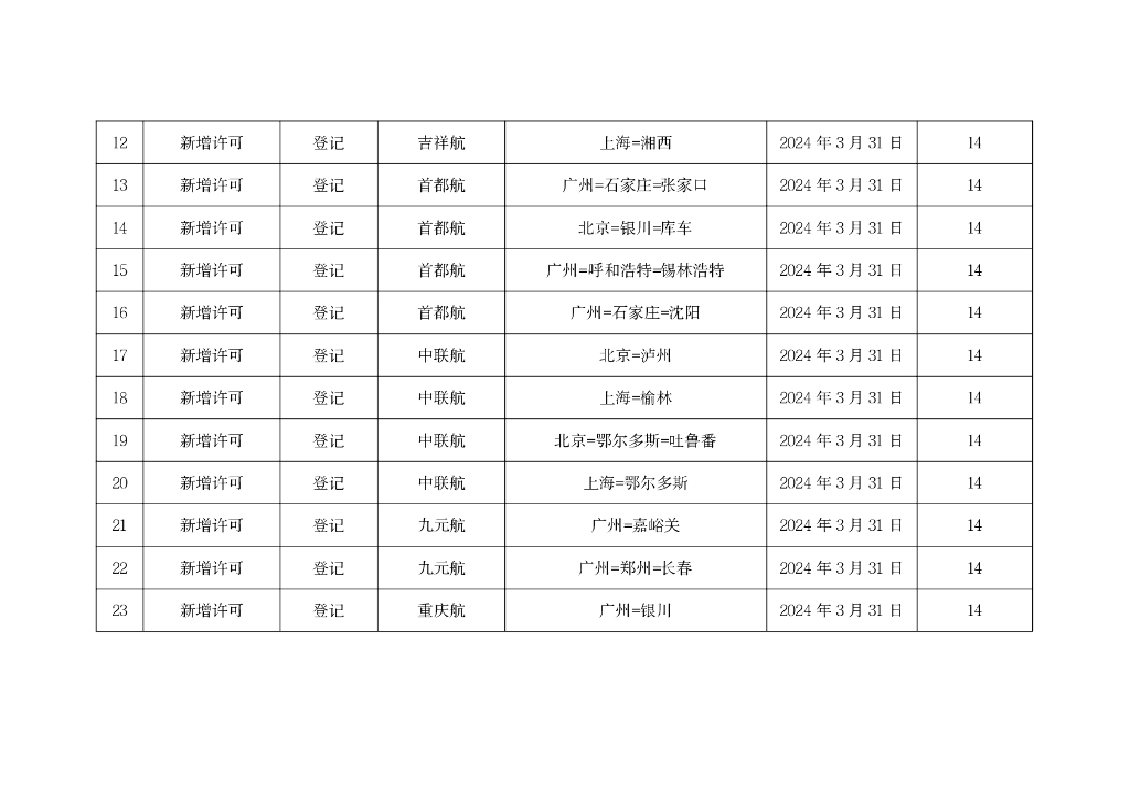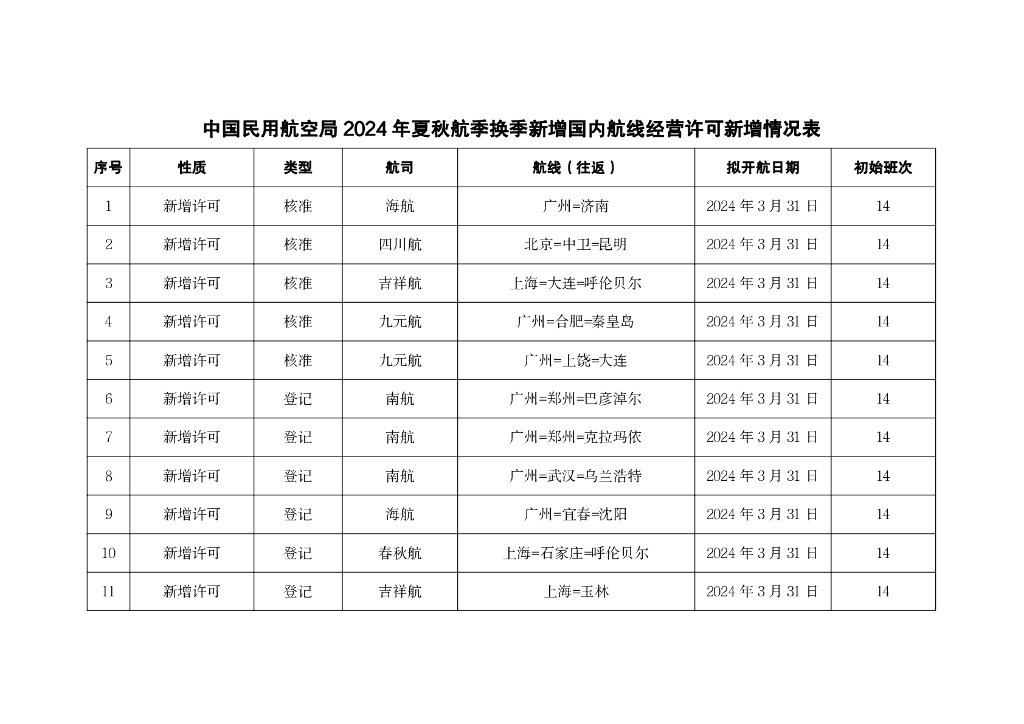 民航局2024年夏秋航季换季颁发、注销国内航线经营许可信息通告.pdf