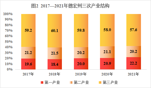 2021年,面对新冠肺炎疫情带来的严峻形势,全州上下以习近平新时代中国特色社会主义思想为指导,深入学习贯彻习近平总书记关于疫情防控工作的重要指示批示精神,认真贯彻落实省委省政府德宏现场办公会精神,战疫情、保民生,扎实做好“六稳”“六保”工作,有序推进复工复产、复商复市,确保了全州经济社会发展大局稳定。