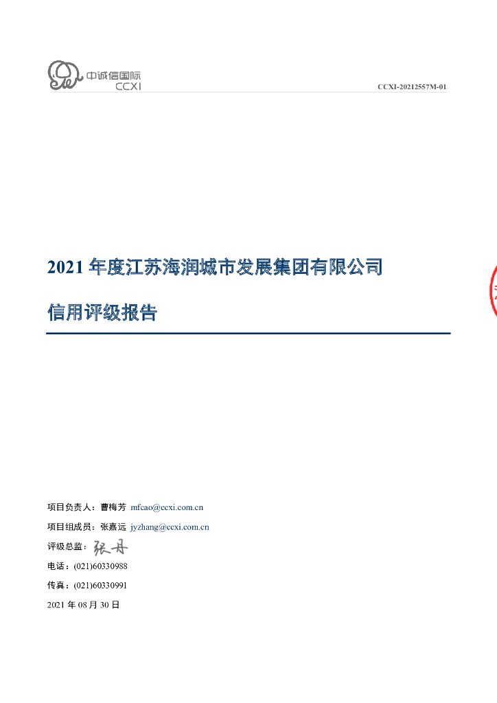中诚信:江苏海润城市发展集团有限公司2021年度信用评级报告.pdf