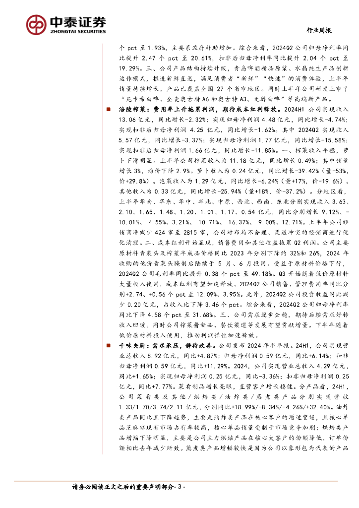 中泰证券:食品饮料周思考(第35周):食品饮料半年报分化,关注分红提升和成本拐点.pdf
