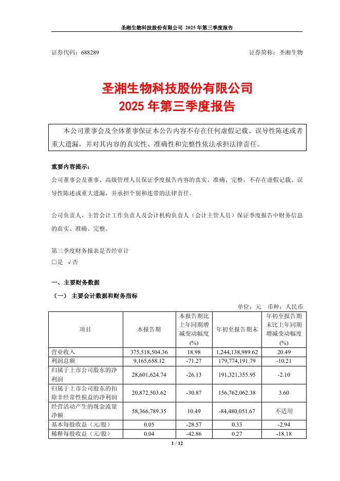 688289-圣湘生物:圣湘生物科技股份有限公司2025年第三季度报告.pdf