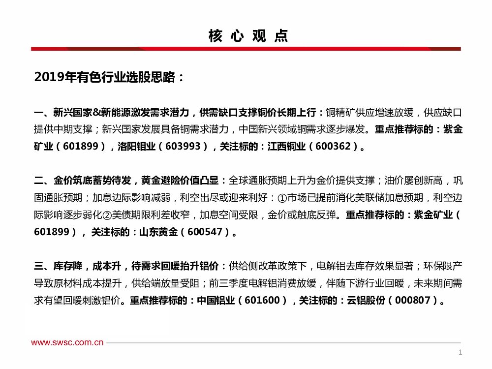 西南证券:有色金属行业2019年年度投资策略:关注铜、黄金、铝细分行业龙头.pdf