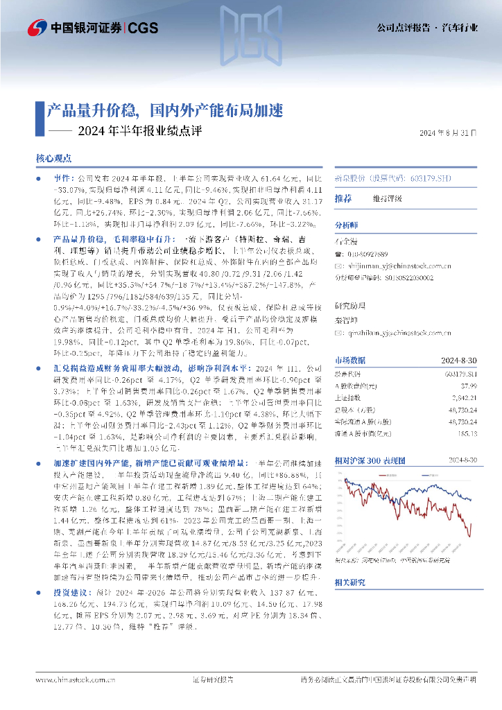 中国银河:新泉股份(603179)-2024年半年报业绩点评:产品量升价稳,国内外产能布局加速.pdf