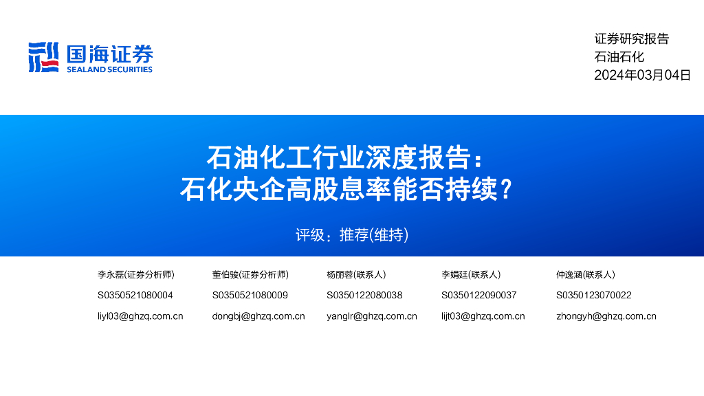 国海证券:石油化工行业深度报告:石化央企高股息率能否持续?.pdf