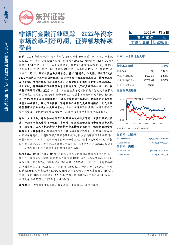 东兴证券:非银行金融行业跟踪:2022年资本市场改革利好可期,证券板块持续受益.pdf