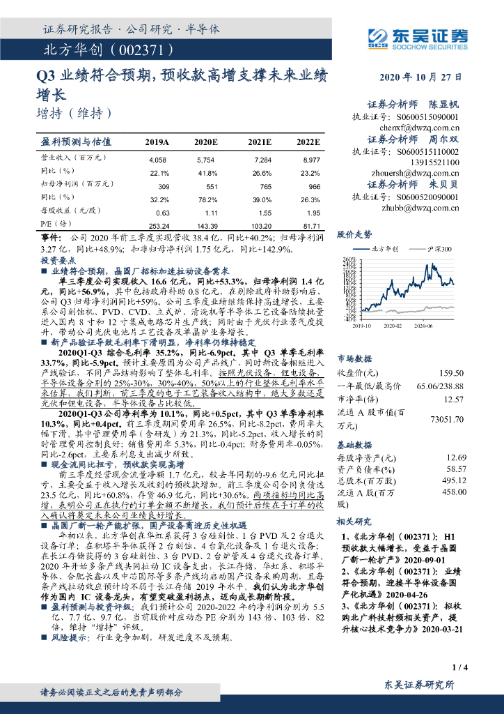 东吴证券:北方华创(002371)-Q3业绩符合预期,预收款高增支撑未来业绩增长.pdf