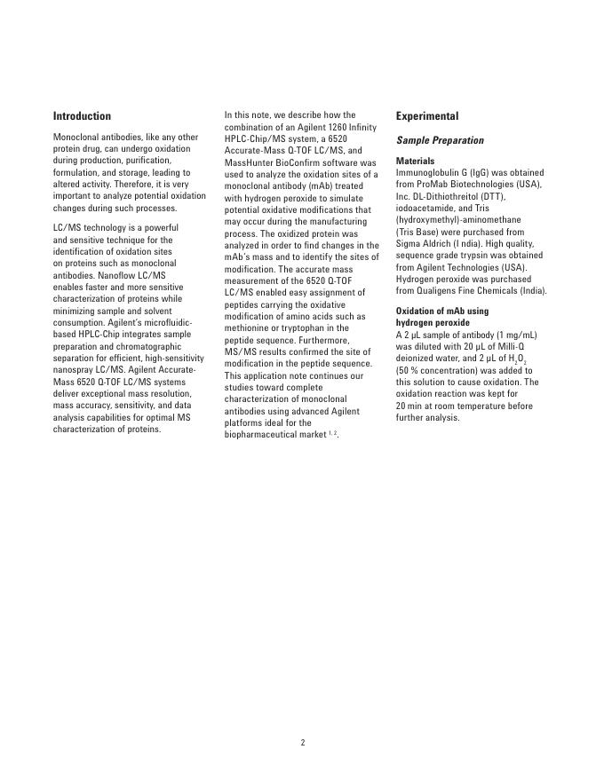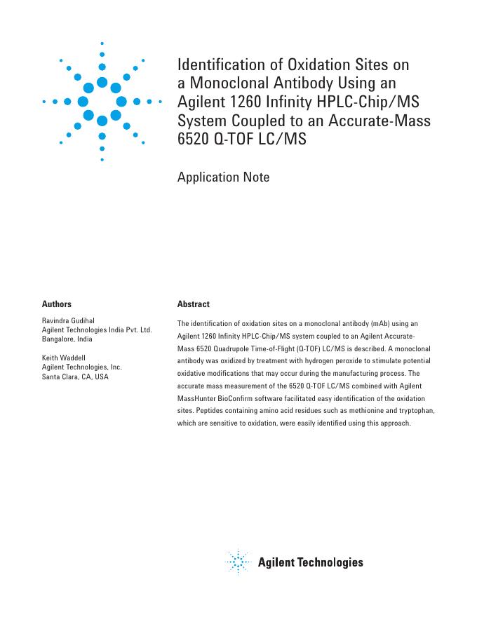 Agilent Identification of Oxidation Sites on a Monoclonal Antibody Using an Agilent 1260 Infinity HPLC-Chip/MS System Coupled to an Accurate-Mass 6520 Q-TOF LC/MS 数据手册.pdf