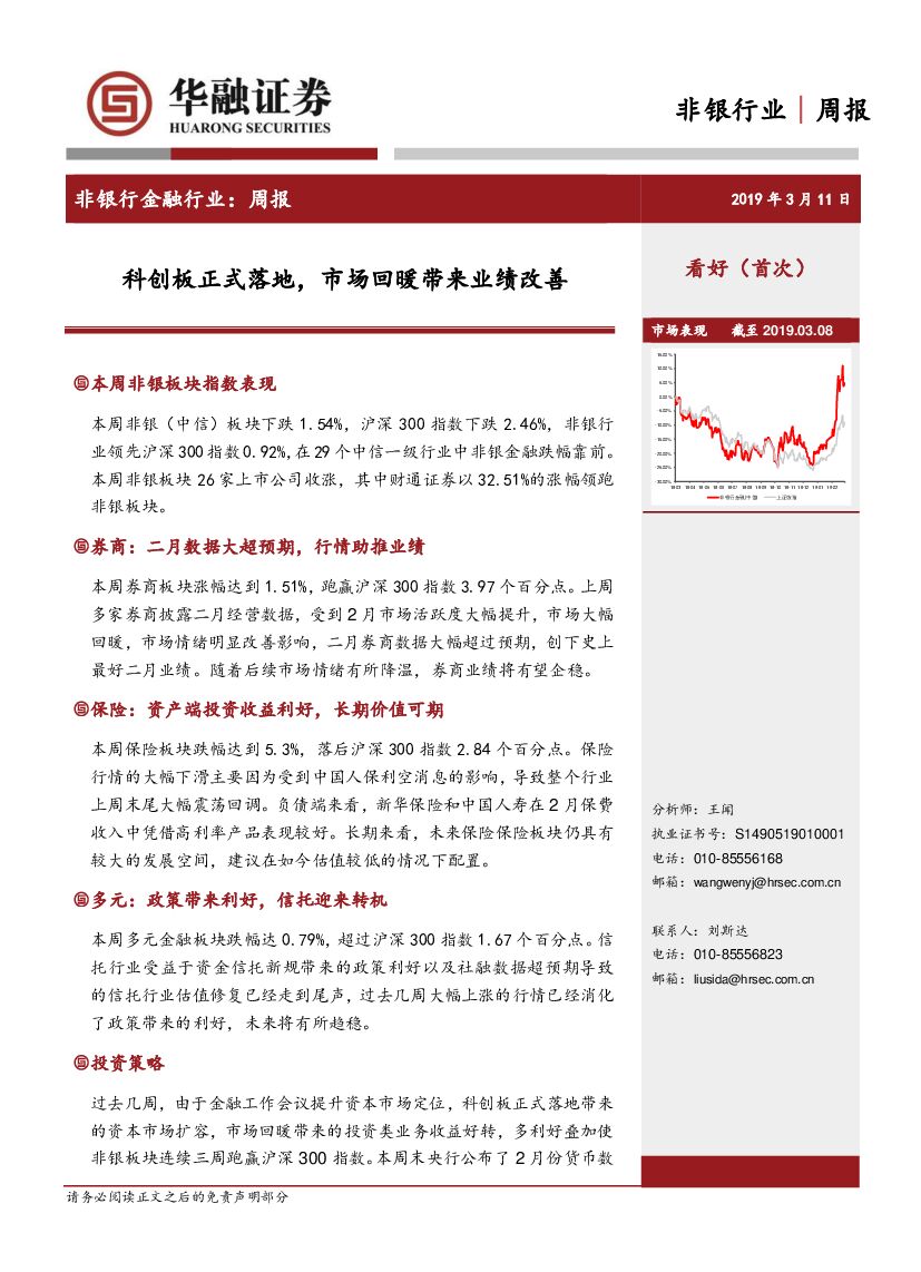 华融证券:非银行金融行业周报:科创板正式落地,市场回暖带来业绩改善.pdf