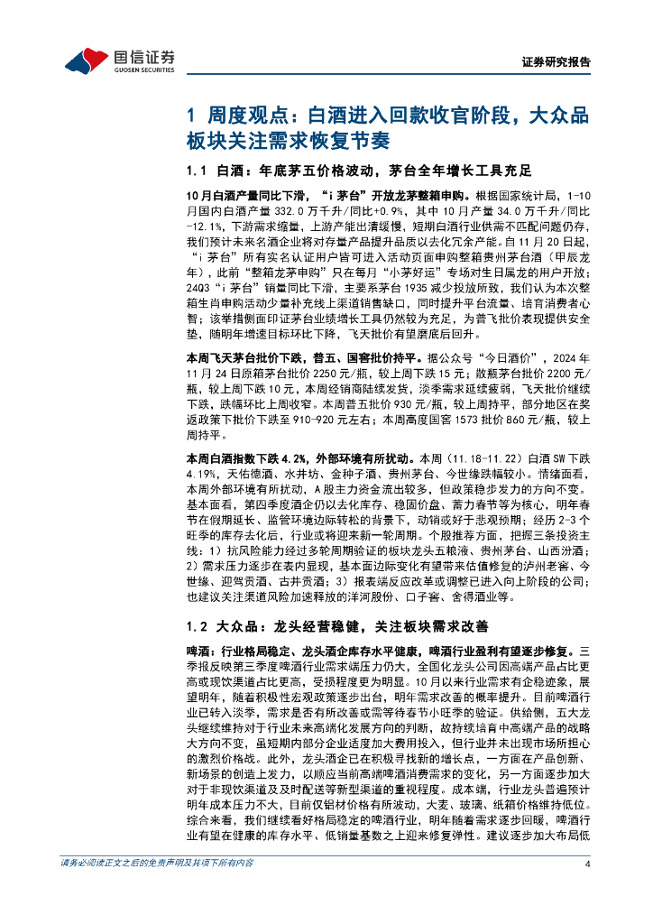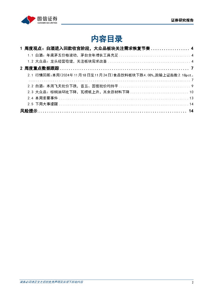 国信证券:食品饮料行业周报(24年第48周):白酒进入回款收官阶段,大众品板块关注需求恢复节奏.pdf
