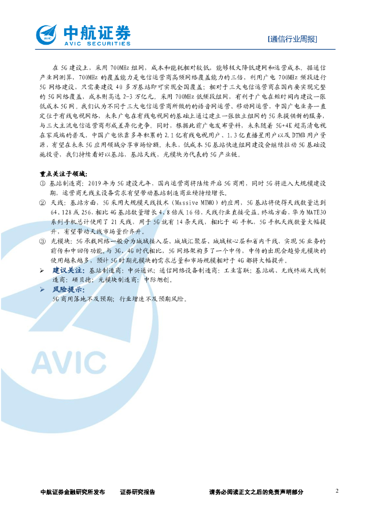 中航证券:通信行业周报:中国广电开通首个5G基站,广电低成本5G网驶入快车道.pdf