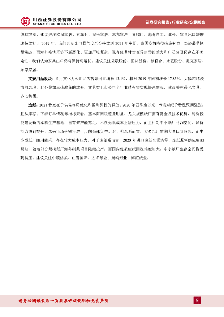 山西证券:轻工制造行业周报:5月家具零售额同比增长12.6%,住宅市场全面回暖.pdf