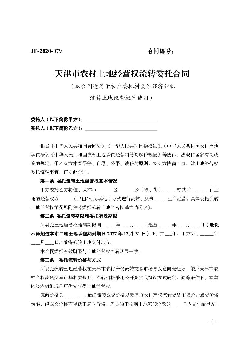JF-2020-079 天津市农村土地经营权流转委托合同.pdf