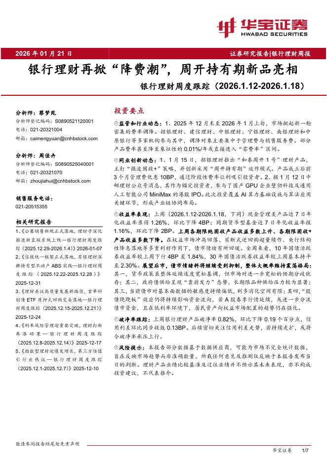 华宝证券:银行理财周度跟踪:银行理财再掀“降费潮”,周开持有期新品亮相.pdf