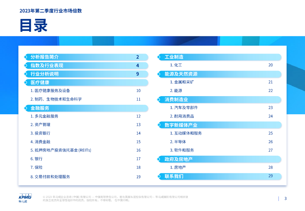 毕马威:2023年第二季度行业市场倍数分析报告.pdf