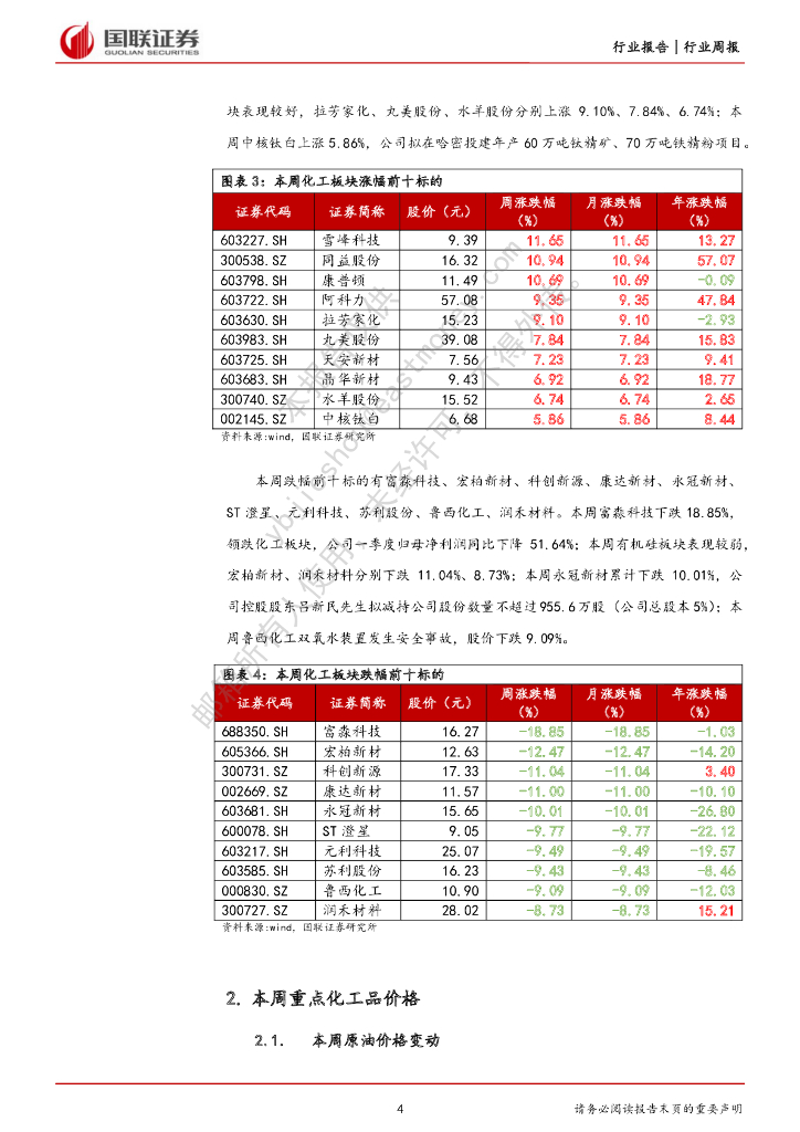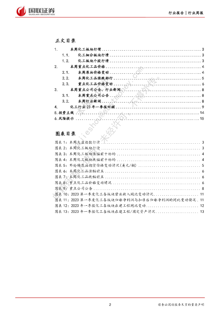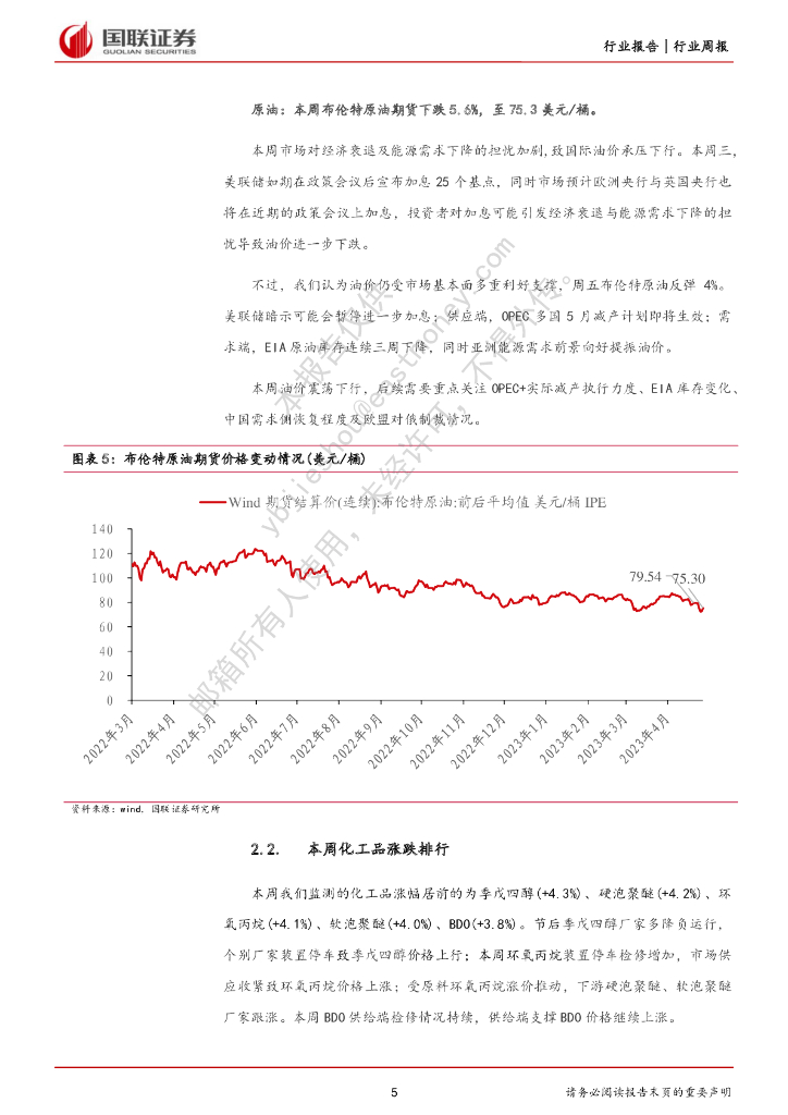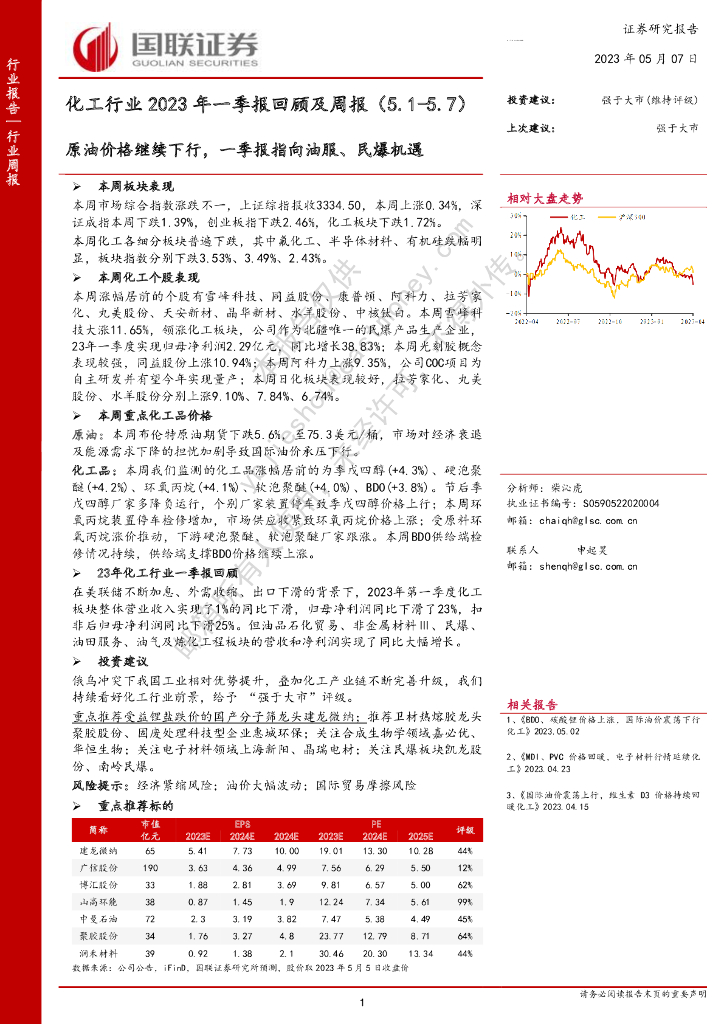 国联证券:化工行业2023年一季报回顾及周报:原油价格继续下行,一季报指向油服、民爆机遇.pdf