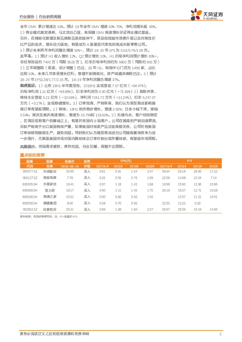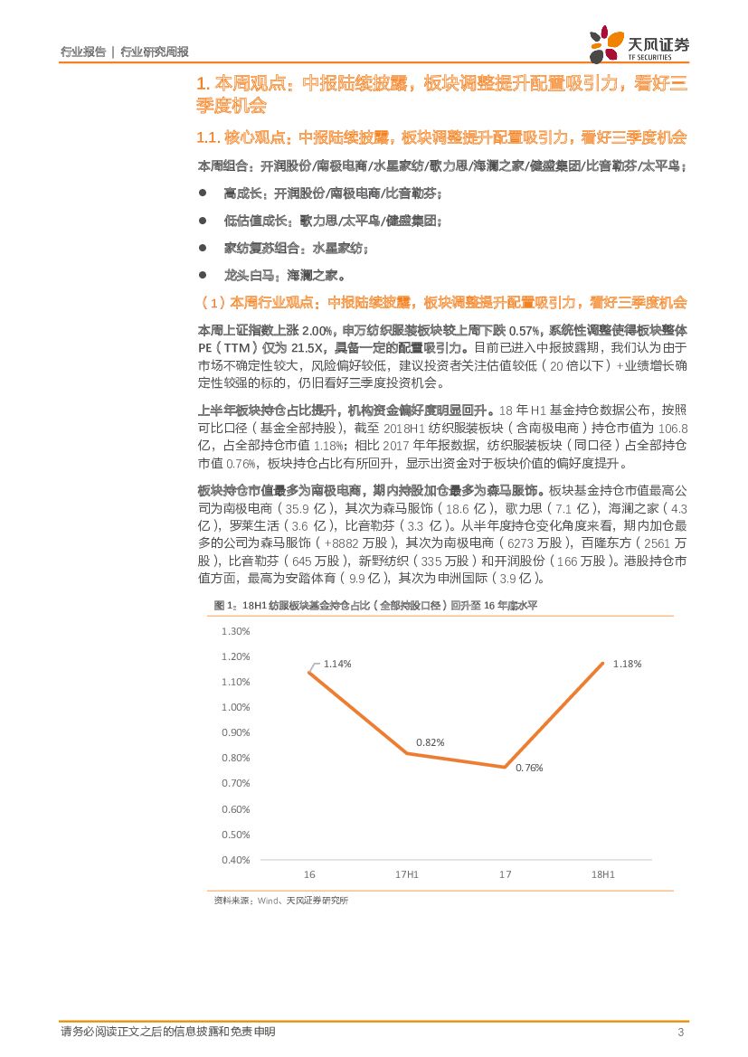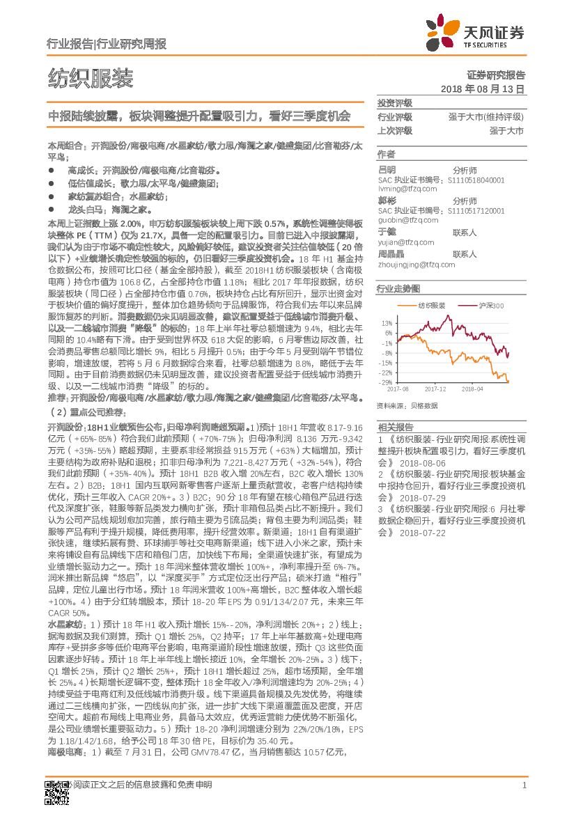 天风证券:纺织服装行业周报:中报陆续披露,板块调整提升配置吸引力,看好三季度机会.pdf