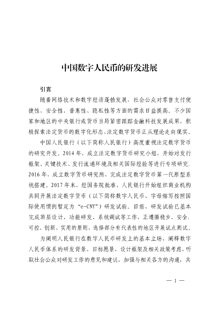 中国人民银行:中国数字人民币的研发进展白皮书.pdf