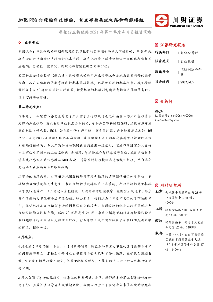 川财证券:科技行业物联网2021年第二季度和4月投资策略:加配PEG合理的科技标的,重点布局集成电路和智能模组.pdf
