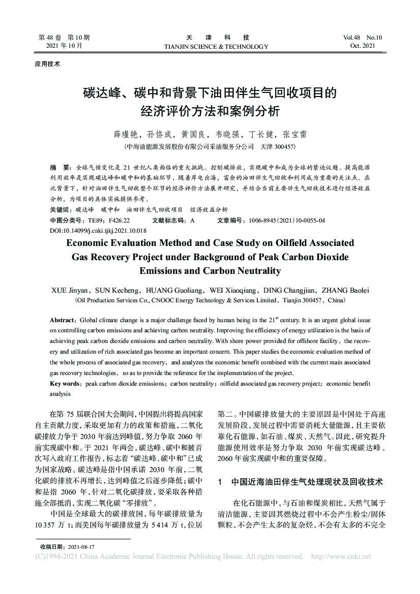 中海油:碳达峰、碳中和背景下油田伴生气回收项目的经济评价方法和案例分析.pdf