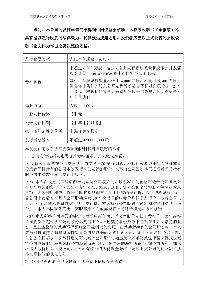 西藏卫信康医药股份有限公司上交所主板IPO上市招股说明书.pdf