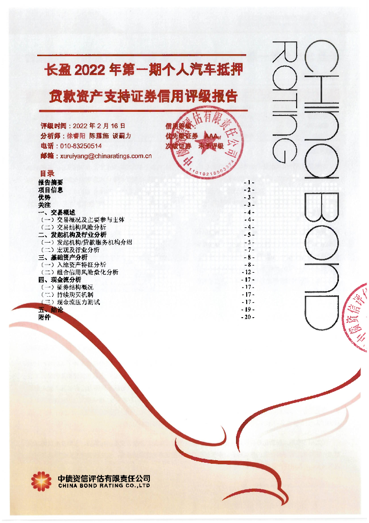 中债资信:长盈2022年第一期个人汽车抵押贷款资产支持证券信用评级报告.pdf