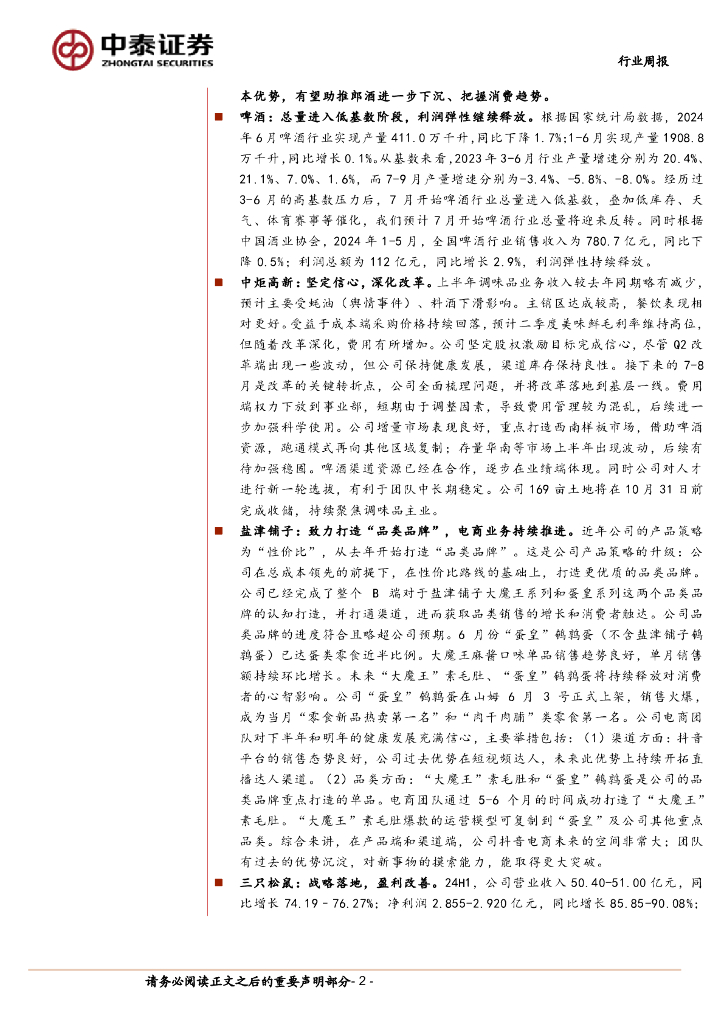 中泰证券:食品饮料行业周思考(第29周):啤酒低基数叠加催化望迎来反转,白酒6月产量环比降速.pdf