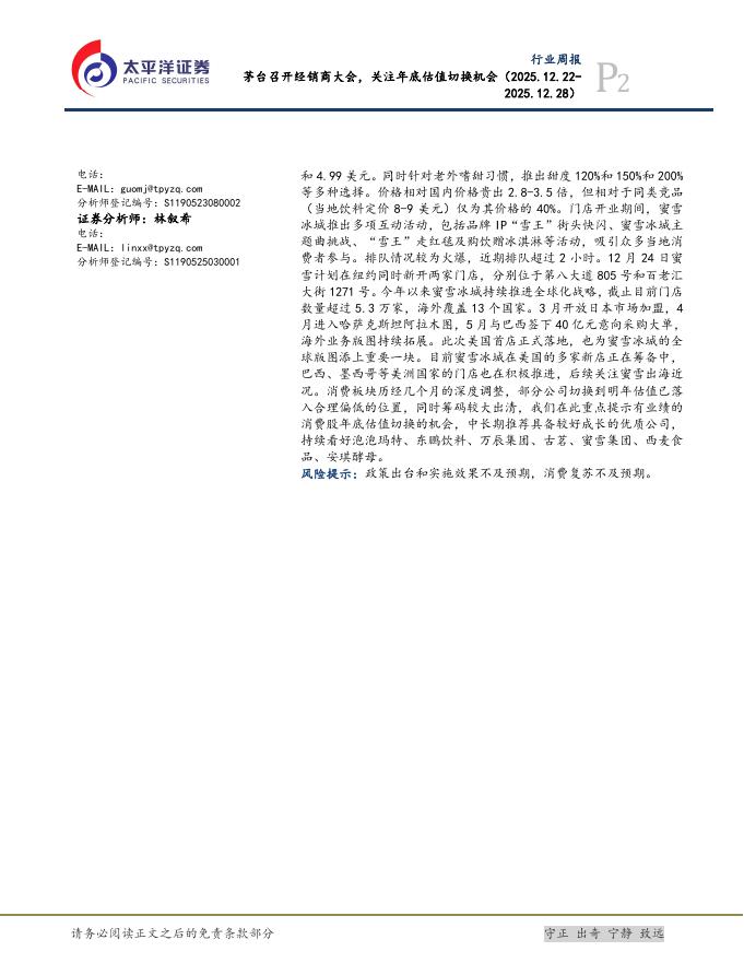 太平洋证券:食品饮料行业周报:茅台召开经销商大会,关注年底估值切换机会.pdf
