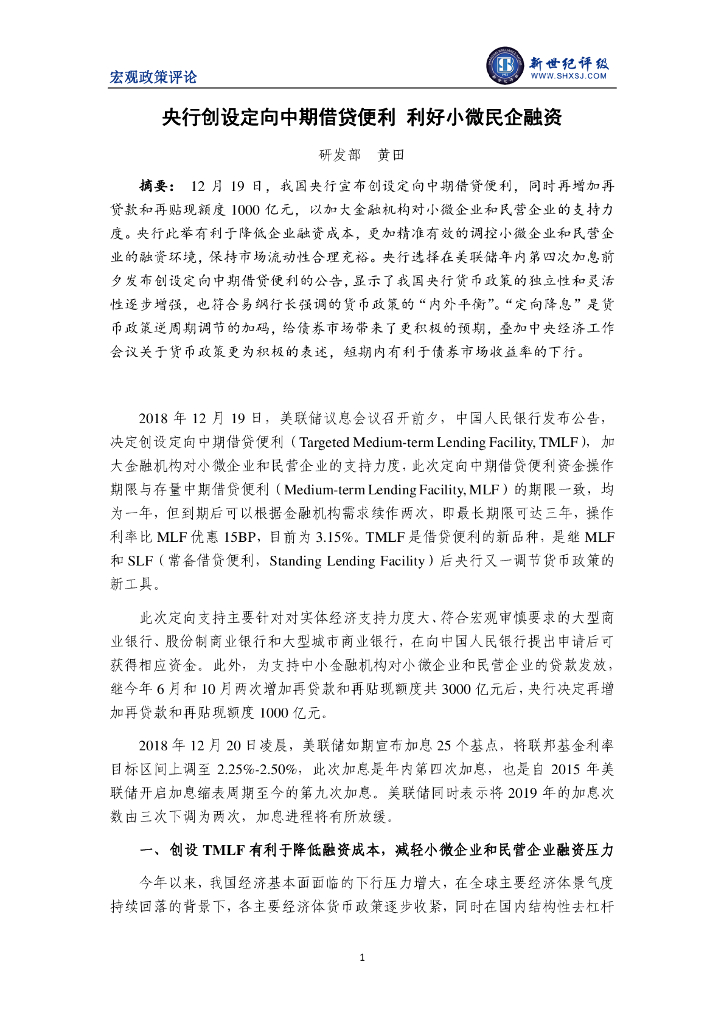 新世纪评级:央行创设定向中期借贷便利 利好小微民企融资.pdf