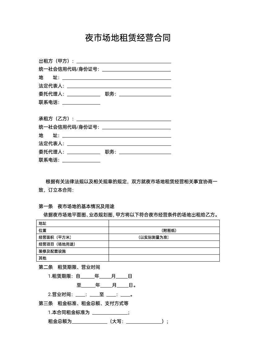 夜市场地租赁经营合同(示范文本).pdf