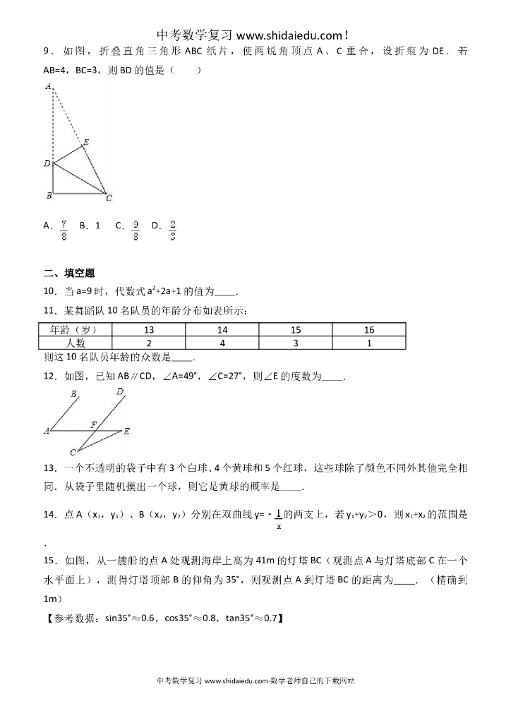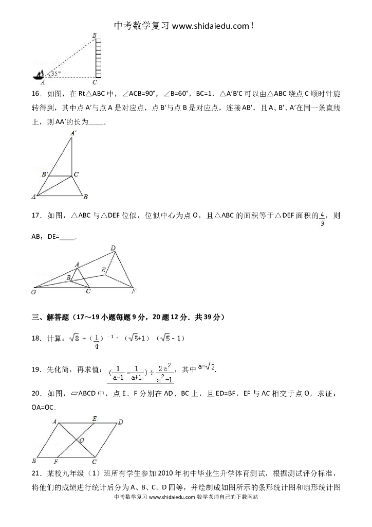 辽宁省沈阳市中考数学一模试卷--有答案.doc