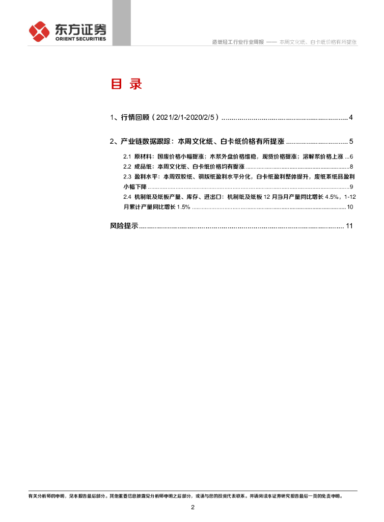 东方证券:造纸产业链数据每周速递:本周文化纸、白卡纸价格有所提涨.pdf