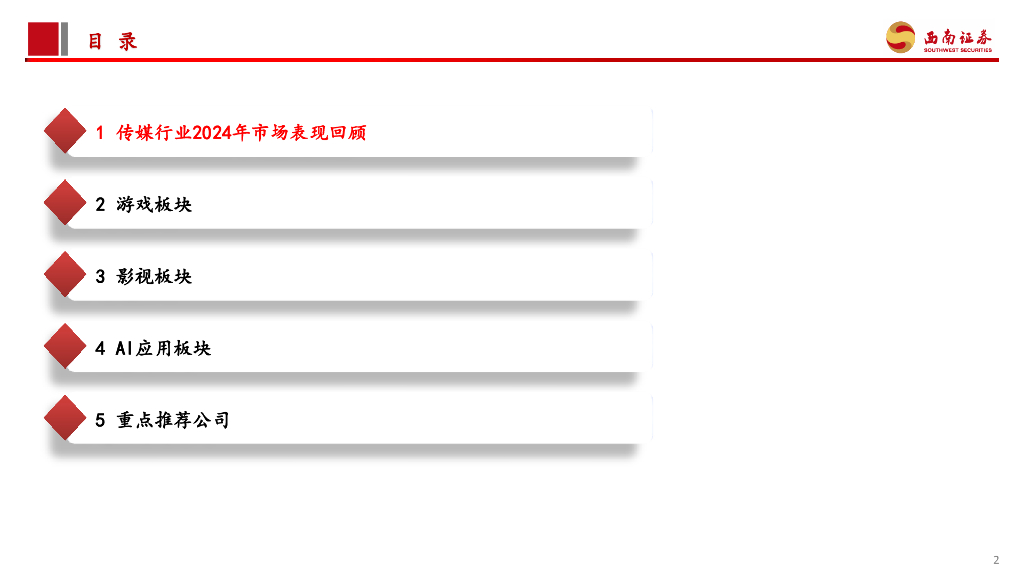 西南证券:传媒行业2025年投资策略:AI应用百花齐放,关注储备游戏上线和票房复苏.pdf
