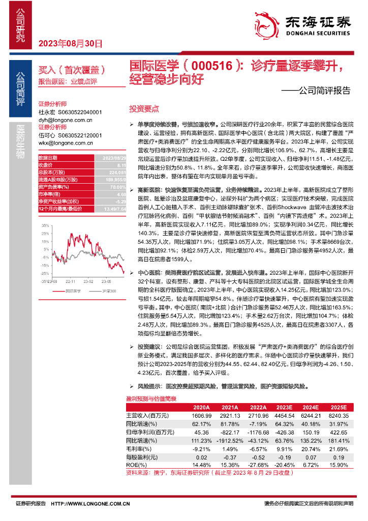 东海证券:国际医学(000516)-公司简评报告:诊疗量逐季攀升,经营稳步向好.pdf