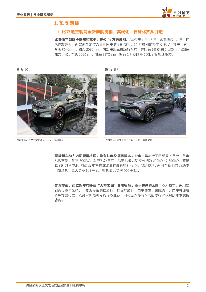 天风证券:汽车行业周报:比亚迪王朝网全新旗舰亮相,高端化、智能化齐头并进.pdf